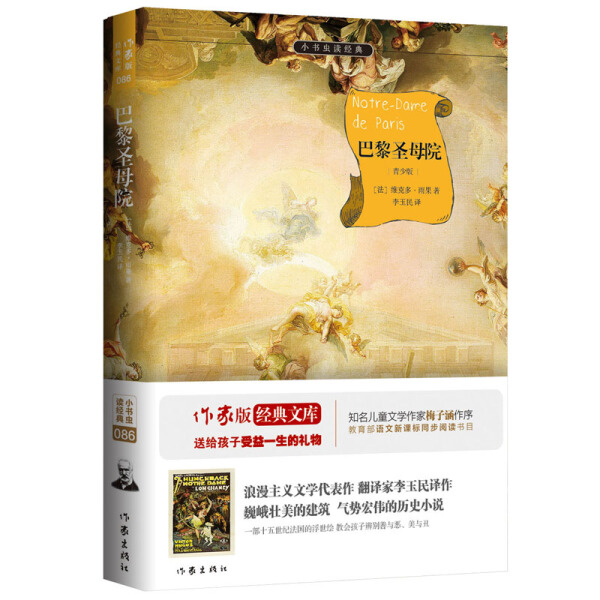 本書(shū)是法國(guó)文學(xué)家雨果于1831年發(fā)表的一部小說(shuō),主要圍繞一位美麗的吉卜賽姑娘與敲鐘人卡西莫多、主教助理克洛德、騎衛(wèi)隊(duì)長(zhǎng)浮比斯之間可歌可泣的故事,講述了人間種種苦難、愛(ài)、恨,善良與邪惡,是十九世紀(jì)浪漫主義文學(xué)的代表作,具有很高的現(xiàn)實(shí)意義與歷史價(jià)值。