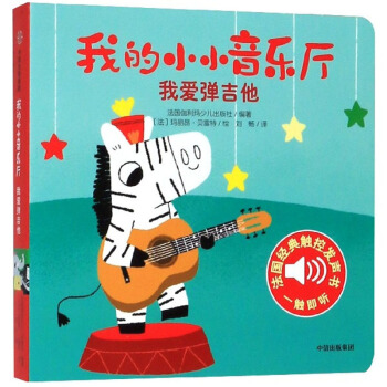 《我的小小音樂廳》系列是一套精巧的適合低幼寶寶的音樂啟蒙書。寶寶小手輕觸按鍵,就可以聆聽美妙聲音,一本書就像是一個小小八音盒,寶寶可以自己撥放他們喜愛的樂曲。而且每一本都有精心設(shè)計的游戲,和寶寶玩“找一找”“學(xué)一學(xué)”的游戲,辨別聲音,模仿聲音,提高對聲音的敏感度,培養(yǎng)孩子的觀察力及注意力。 《我愛彈吉他》 聽,豎笛、鋼琴、小提琴、吉他、鼓、木琴分別演奏出什么音樂?