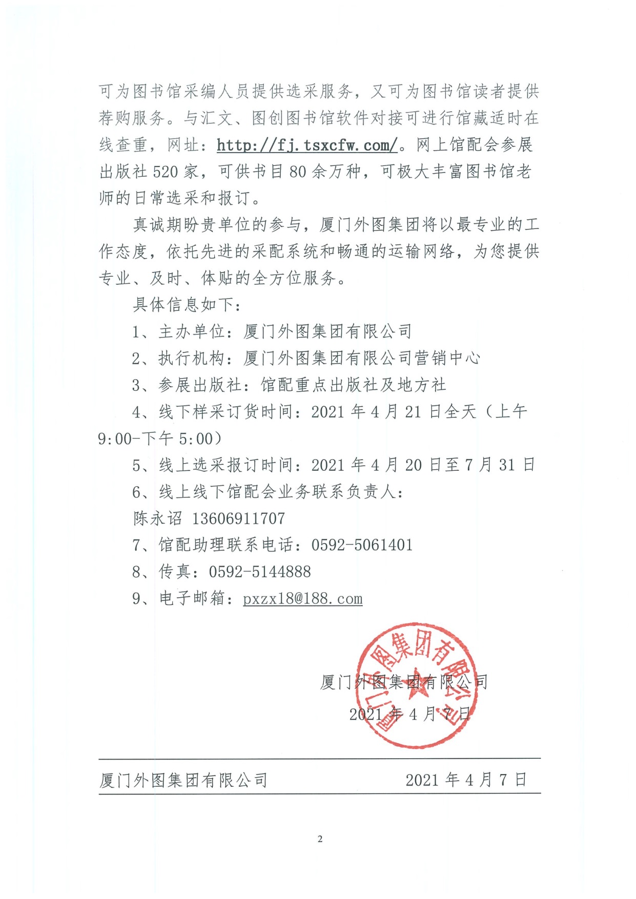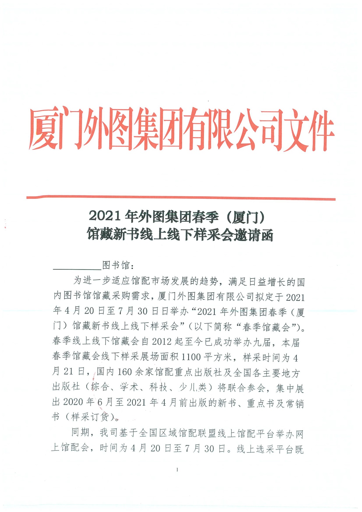 2021年外圖集團春季(廈門)館藏新書線上線下樣采會邀請函