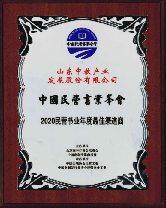 中教產(chǎn)業(yè)受邀參會(huì),并在中國民營書業(yè)峰會(huì)推薦企業(yè)評選活動(dòng)中榮獲“2020民營書業(yè)年度最佳渠道商”稱號(hào)。