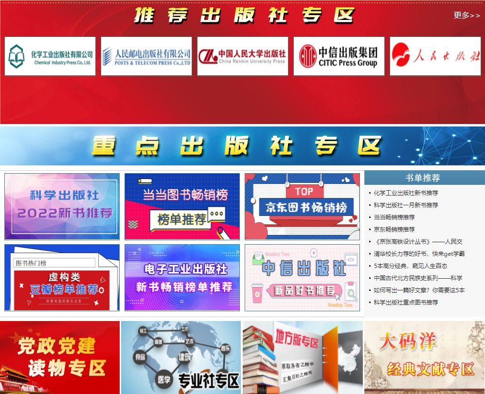 會議時間:2022年2月28日舉行開幕式 2022年1月1日-2022年12月31日全年常態(tài)化服務(wù) 指導(dǎo)單位:中國書刊發(fā)行業(yè)協(xié)會科技發(fā)行委員會 支持單位:八大社、科技專業(yè)社館配聯(lián)盟、大學(xué)出版社館配聯(lián)盟等近500家出版社(商) 主辦單位:全國館配區(qū)域聯(lián)盟各成員單位共同主辦 技術(shù)支持:山東中教產(chǎn)業(yè)發(fā)展股份有限公司 圖書品種:全國500多家出版單位的90多萬條可供書目數(shù)據(jù) 線上網(wǎng)址:www.wsgph.com 特色亮點: 1.平臺共享。網(wǎng)上館配會打造的是館配行業(yè)上下游全鏈條“一站式”共享服務(wù)平臺,既可為大中小學(xué)圖書館、資料室及公共圖書館和有圖書采購需求或推薦閱讀需求的單位全年常態(tài)化提供薦購和選采服務(wù)以及出版社可供書目的下載服務(wù),又可為出版社和館配服務(wù)商提供可供書目數(shù)據(jù)的上傳服務(wù)及圖書館選采情況和訂單流向的統(tǒng)計和下載服務(wù)。 2.常態(tài)化服務(wù)。網(wǎng)上館配會選用云選采模式,不分春季和秋季,完全打通時空壁壘,全年無休為圖書館及讀者提供常態(tài)化線上選采服務(wù),同時兼顧各圖書館招標(biāo)時間的不同及疫情防控的要求,將在不同月份、不同地點、不同主題、分類別推出“書香四季”線上線下互動選采活動(具體安排見平臺線上通知)。 3.雙通道互動。網(wǎng)上館配會平臺為雙服務(wù)通道,按登陸權(quán)限不同分為讀者薦購模式和采編選采模式。在采編選采模式下平臺可為圖書館采編人員提供選采服務(wù),在讀者薦購模式下平臺可為圖書館讀者提供薦購服務(wù)。采編人員在采編選采模式下可隨時下載讀者和采編人員為本館薦購/選采的書目并生成訂單,同時可將讀者薦購書單的處理結(jié)果實時反饋讀者。 4.可供書目的時效性和全面性。目前,網(wǎng)上館配會平臺已與全國79家重點出版社實現(xiàn)了可供書目的電子數(shù)據(jù)交換(EDI)實時對接,與492家出版社(商)實現(xiàn)了可供書目的模版數(shù)據(jù)15天對接,實現(xiàn)了出版社可供書目數(shù)據(jù)與網(wǎng)上館配會服務(wù)平臺書目數(shù)據(jù)的同步。平臺已有全國500多家出版單位的90多萬條可供書目數(shù)據(jù)供圖書館和讀者薦購/選采,強大的資源整合能力和海量同步數(shù)據(jù)為出版社可供書目時效性和全面性及圖書館到書率提供了有效保障。 5.多樣化的功能服務(wù)。網(wǎng)上館配會平臺擁有六大目錄分類模式、六大特色服務(wù)頻道及六大拓展服務(wù)專區(qū)等服務(wù)功能,實現(xiàn)了圖書館品種選采功能的專業(yè)化、需求化、精準(zhǔn)化的有效組合。其中,平臺新增的出版社視頻直播產(chǎn)品推薦功能,視頻頁附視頻直播書單,圖書館老師可進(jìn)行單本和批量選采,讀者可進(jìn)行單本薦購,直播過程中有紅包互動等各種衍生活動。 6.智能化選采。網(wǎng)上館配會平臺在實現(xiàn)讀者和采編人員紙質(zhì)書薦購選采、電子書薦購選采和紙電同步薦購選采服務(wù)模式的同時,支持讀者單品薦購、采編人員單品和批量選采及采集器單品選采、薦購選采品種在線適時館藏查重、采編人員對薦購選采訂單處理以及出版社可供數(shù)據(jù)(Excel和ISO格式)批量下載和出版商現(xiàn)貨目錄批量下載、外部訂單管理等服務(wù)功能。目前,網(wǎng)上館配會薦購/選采平臺累計有3515家高校圖書館、公共圖書館及有圖書選采意向的注冊會員單位,網(wǎng)上館配會館配數(shù)據(jù)采訪平臺累計有482家高校圖書館、公共圖書館的注冊會員單位,全國另有3900多家中小學(xué)圖書館在使用平臺。 7.紙電一體化選采。網(wǎng)上館配會平臺是全國首個能夠提供紙電一體化選采服務(wù)的云選采平臺。平臺上的紙電同步薦購選采專區(qū)可以為讀者和采編人員提供紙質(zhì)書薦購選采、電子書薦購選采和紙電同步薦購選采服務(wù),并能夠?qū)崿F(xiàn)在線適時館藏查重。 線上網(wǎng)址www.wsgph.com