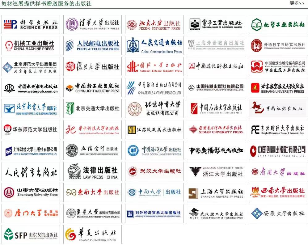 本活動(dòng)依托于“教材巡展網(wǎng)上行”(www.jcxzwsx.com)服務(wù)平臺(tái),“教材巡展網(wǎng)上行”平臺(tái)參展的出版社包括:中國(guó)建筑工業(yè)出版社、中國(guó)建設(shè)科技出版社、科學(xué)出版社、清華大學(xué)出版社、北京大學(xué)出版社、電子工業(yè)出版社、化學(xué)工業(yè)出版社、機(jī)械工業(yè)出版社、人民郵電出版社、上海外語教育出版社、外語教學(xué)與研究出版社等160多家優(yōu)秀教材出版單位,其中贈(zèng)送教材樣書的出版社52家,可贈(zèng)送教材樣書品種186924種。本次線上教材巡展活動(dòng)將重點(diǎn)展示各家出版社近三年出版的各類獲獎(jiǎng)教材、規(guī)劃教材和精品教材。