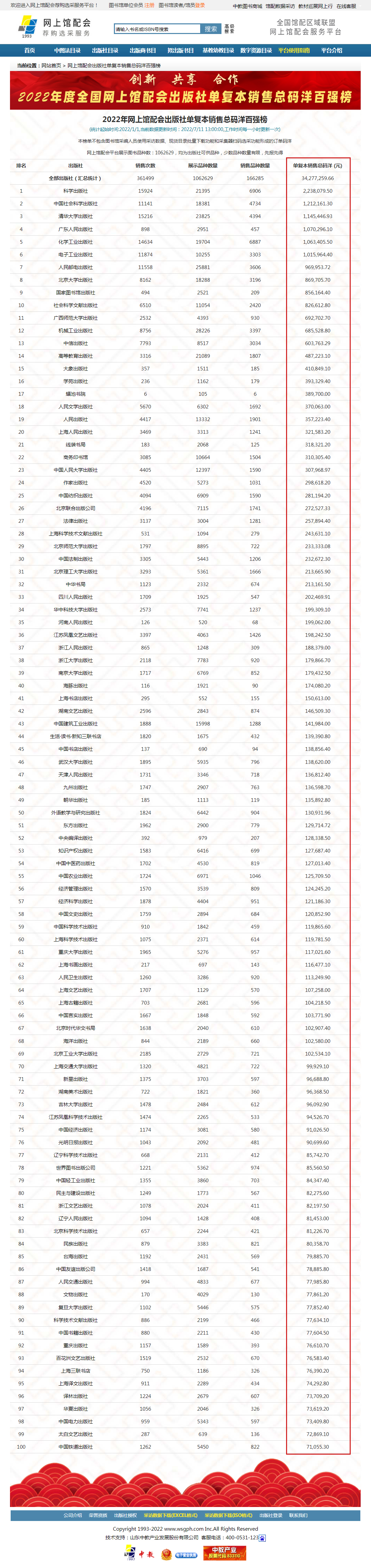 > 單復(fù)本銷售碼洋34,277,259.66元!——2022年度全國網(wǎng)上館配會(huì)7月11日播報(bào)