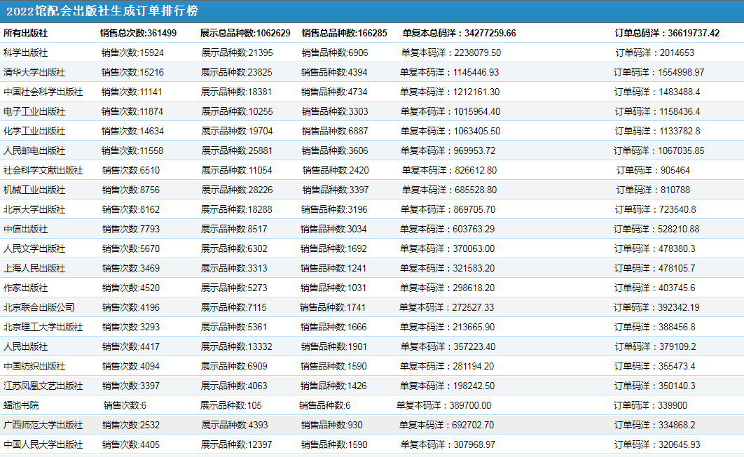 單復(fù)本銷售碼洋34,277,259.66元!——2022年度全國網(wǎng)上館配會(huì)7月11日播報(bào)