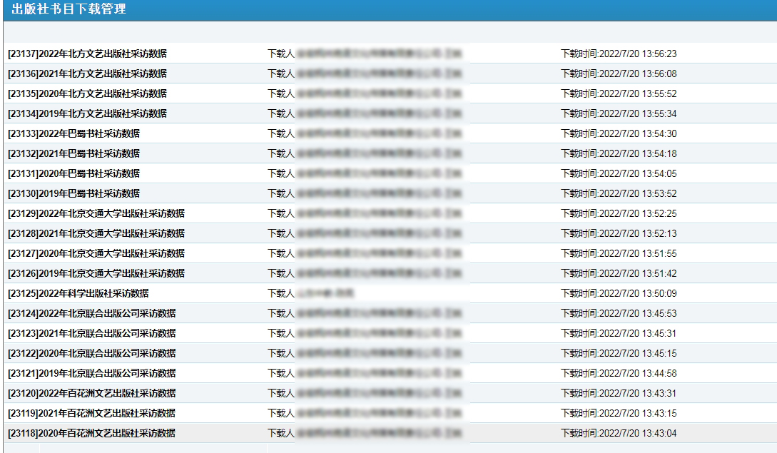 【說明】以上數(shù)據(jù)列表圖中,涉及到用戶隱私信息的部分,均已做模糊處理。 目前,網(wǎng)上館配會(huì)平臺(tái)(www.wsgph.com)已與全國(guó)79家重點(diǎn)出版社實(shí)現(xiàn)了可供書目的EDI適時(shí)對(duì)接,與近500家出版社實(shí)現(xiàn)了可供書目的模版15天對(duì)接,出版社可供書目數(shù)據(jù)與網(wǎng)上館配會(huì)服務(wù)平臺(tái)書目數(shù)據(jù)實(shí)現(xiàn)了同步。目前,平臺(tái)已有100多萬條可供書目數(shù)據(jù),便于圖書館和讀者薦購(gòu)/選采。平臺(tái)強(qiáng)大的資源整合能力和海量的同步數(shù)據(jù),對(duì)出版社可供書目的時(shí)效性、全面性,以及圖書館的到書率,提供了有效保障! 在此,希望還沒有實(shí)現(xiàn)EDI數(shù)據(jù)對(duì)接的出版社,能夠充分認(rèn)識(shí)到EDI數(shù)據(jù)對(duì)接在館配服務(wù)工作中的便捷性和重要性,從而早日實(shí)現(xiàn)出版社可供書目的EDI數(shù)據(jù)對(duì)接。 另外,在加快數(shù)據(jù)同步速度的同時(shí),希望所有出版社完善圖書產(chǎn)品在直播間的播放種類,增加圖書視頻資料在平臺(tái)的播放頻次,以便更好的服務(wù)于圖書館選采工作。對(duì)于還沒有參加2022全國(guó)網(wǎng)上館配會(huì)的部分出版社,如有意向,請(qǐng)抓緊與平臺(tái)客服聯(lián)系。 我們期待更多的圖書館、出版社同仁使用“網(wǎng)上館配會(huì)”平臺(tái)(www.wsgph.com)。