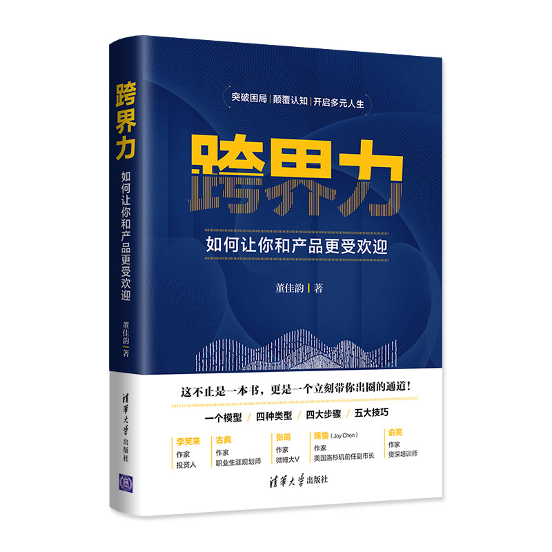 內(nèi)容簡介:全書貫穿一個核心思想:給的能力(給什么,怎么給,為什么給);一個核心模型:跨界認知塔;一套實操方法:四種跨界類型、跨界四步驟和五大秘密技巧!犊缃缌Γ喝绾巫屇愫彤a(chǎn)品更受歡迎》融合市場、品牌、管理、策劃、執(zhí)行、美學、心理學多種學科內(nèi)容,提供了非常好用又好理解的理論模型及工具、心理現(xiàn)象及科學實驗。 《跨界力:如何讓你和產(chǎn)品更受歡迎》能夠支持事業(yè)遇到瓶頸的人,得以快速獲得走出困境的各項技巧和有效方法,能夠支持沒有資源和人脈的人,獲得真正的人脈和資源,能夠增強我們對事情的掌控力、反脆弱力、自信力,讓我們在這個充滿不確定性的時代擁有更多的安全感和自在感。