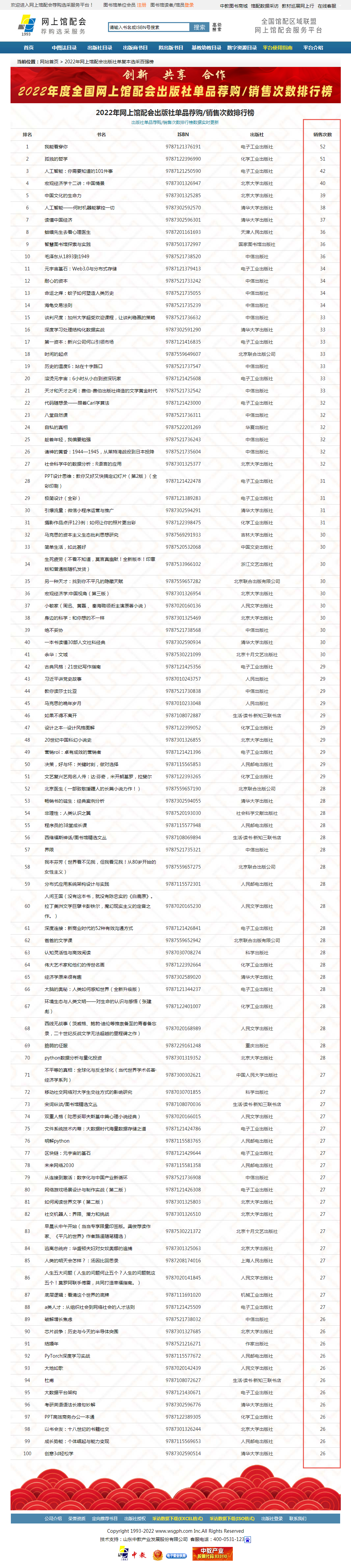 2.出版社單品薦購/銷售次數(shù)排行榜