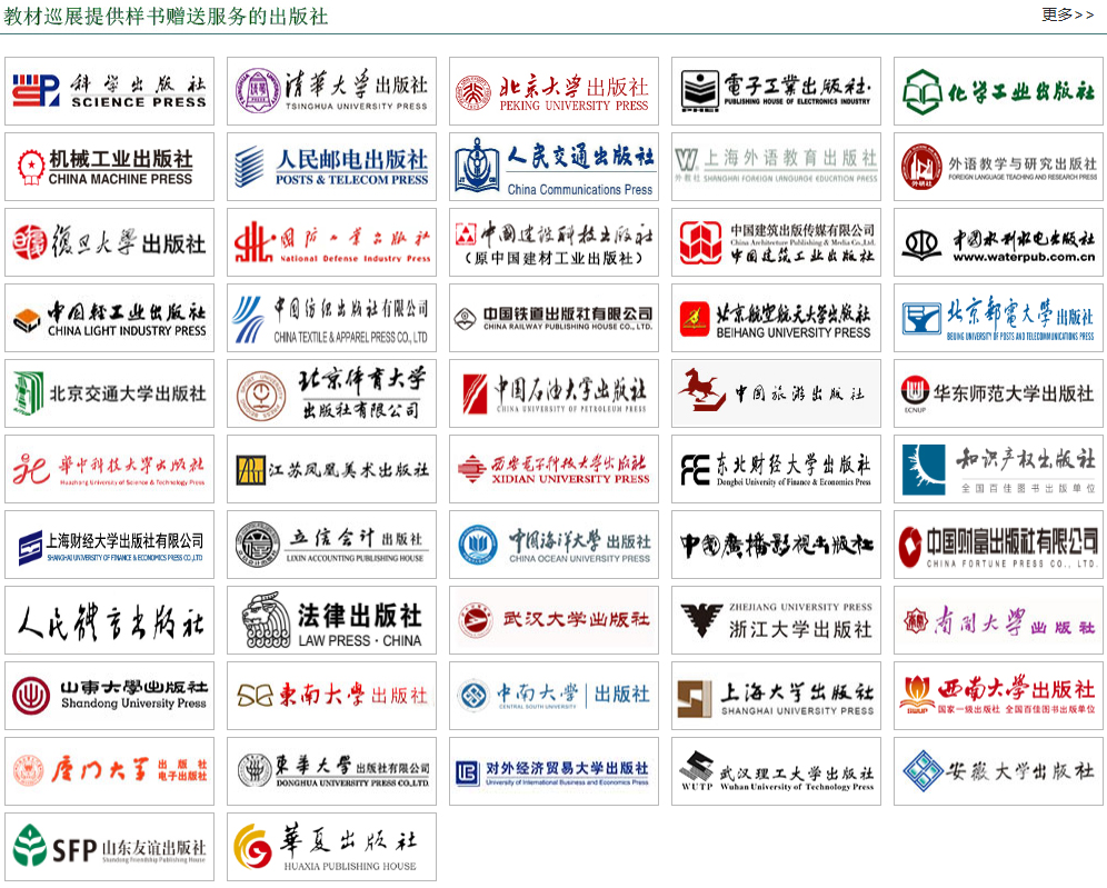 以上為參與教材樣書贈送的52家出版社圖標(biāo) 參與教材樣書申請學(xué)校共:249所 教材樣書申請次數(shù):2066次