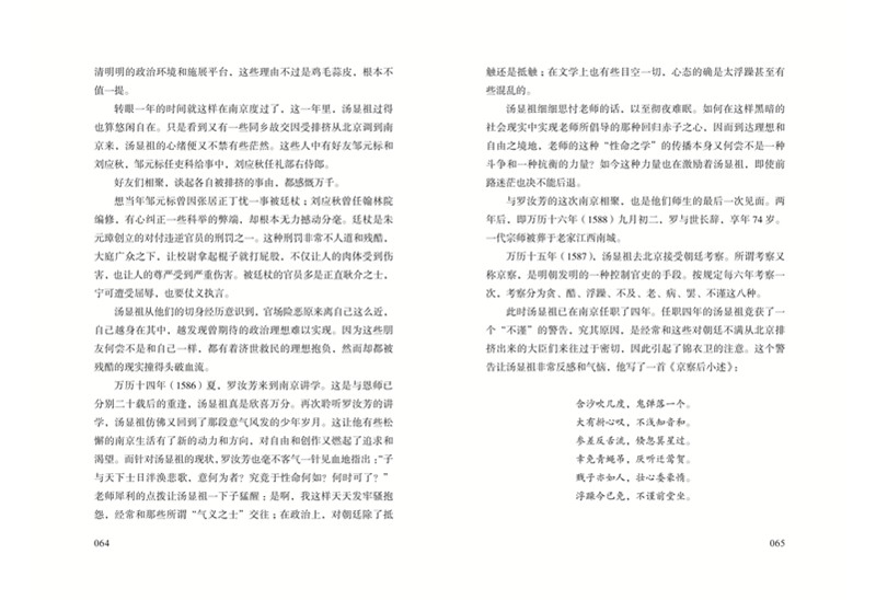 本書講述了湯顯祖坎坷的經(jīng)歷,包括童年、家世、做官、引退、創(chuàng)作等,以思想性、文學(xué)性、通俗性和精彩的故事,力圖讓讀者留下深刻印象。作者通過對湯顯祖作品的剖析,高度評價了他的戲夢人生體現(xiàn)出的對至情、至真、至善、至美的追求和向往,向讀者展現(xiàn)了一個天資聰穎、正直剛強、性格獨特、充滿浪漫主義精神的藝術(shù)大師悲欣交集的奮斗人生。