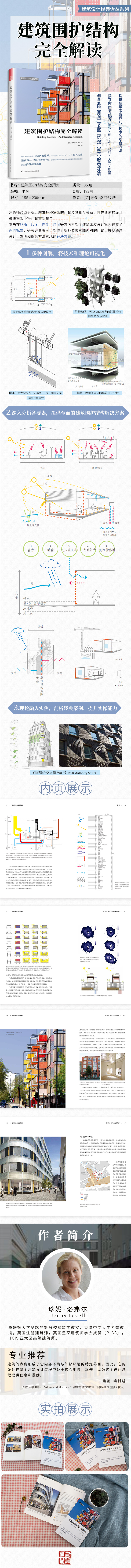 《建筑圍護(hù)結(jié)構(gòu)完全解讀》由三部分組成!酢醪俊胺中问脚c性能的循環(huán)反饋”,在場所、尺度、性能和時(shí)間等方面為整個(gè)建筑表皮設(shè)計(jì)策略建立了評價(jià)標(biāo)準(zhǔn)。第二部分“整體分析要素”中的各要素——空氣、熱量、水、材料、日光和能源——代表了現(xiàn)在實(shí)踐面對的問題,并且展現(xiàn)了通過良好的設(shè)計(jì)、發(fā)明和綜合方法可以實(shí)現(xiàn)的解決方法。第三部分“建筑表皮綜合策略”中的案例研究提供了那些成功結(jié)合了詩意的感性和實(shí)用性的建成作品。