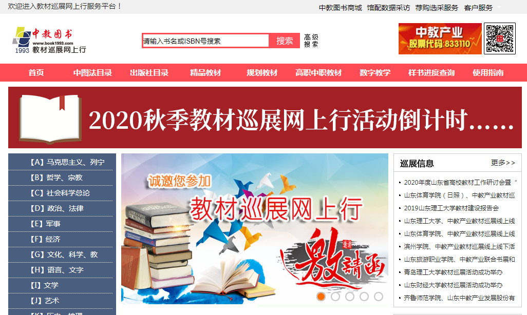 新型冠狀病毒肺炎疫情發(fā)生以來,全國上下同舟共濟(jì),打響了一場沒有硝煙的疫情防控阻擊戰(zhàn)。疫情之下,每年傳統(tǒng)的秋季教材巡展大概率無法正常進(jìn)行。應(yīng)廣大高校、中職學(xué)校及任課教師的要求,秉承“根植教育,服務(wù)教育”的企業(yè)宗旨,中教產(chǎn)業(yè)發(fā)揮技術(shù)和行業(yè)資源優(yōu)勢,著力打造科學(xué)化、現(xiàn)代化的教材服務(wù)新模式,努力為“后疫情時(shí)期”學(xué)校教材建設(shè)提供創(chuàng)新服務(wù)。自2020年5月18日開始,公司旗下“教材巡展網(wǎng)上行”(www.jcxzwsx.com)服務(wù)平臺(tái)將聯(lián)合全國近百家以教材出版為主的出版社共同推出“2020全國秋季教材巡展網(wǎng)上行”活動(dòng)。為各學(xué)科任課老師的教材選用、教材樣書免費(fèi)申請(qǐng)、自編教材的出版等方面提供服務(wù)。 平臺(tái)的教材產(chǎn)品按出版社、中圖分類法分類,可以常態(tài)化的向任課教師提供全國近400家出版社的近20萬種教材產(chǎn)品信息,并可按專業(yè)、書名、作者、出版社進(jìn)行產(chǎn)品搜索、選擇。同時(shí),平臺(tái)設(shè)立了規(guī)劃教材、精品教材、高職中職教材、數(shù)字教學(xué)等服務(wù)專區(qū),清華大學(xué)出版社、科學(xué)出版社、北京大學(xué)出版社、電子工業(yè)出版社等20多家出版社還可提供教材的試讀、隨書課件及部分教材的視頻課程,極大的方便了任課教師的選書需要。另外,平臺(tái)可為任課教師提供與部分出版社之間的樣書選贈(zèng)互動(dòng)服務(wù)和出版服務(wù),任課教師通過登陸教務(wù)處網(wǎng)站的教材巡展網(wǎng)上行(需做鏈接)或直接登陸“教材巡展網(wǎng)上行”平臺(tái),即可在網(wǎng)上向參加教材巡展并提供樣書贈(zèng)送服務(wù)的出版社申請(qǐng)樣書;每個(gè)出版社都有專屬的后臺(tái)賬號(hào),可以登陸網(wǎng)站后臺(tái)下載任課教師填報(bào)的針對(duì)本社的樣書需求信息以及出版意向信息,并將處理結(jié)果適時(shí)反饋任課教師。 “教材巡展網(wǎng)上行”平臺(tái)打破了傳統(tǒng)的教材巡展模式,突破了場地、巡展時(shí)間、參展品種和參展人數(shù)的局限,給學(xué)校、任課教師、出版社帶來了跨時(shí)空的極致體驗(yàn)。老師們可以足不出戶,隨時(shí)隨地登陸平臺(tái)挑選符合課程教學(xué)要求的教材。